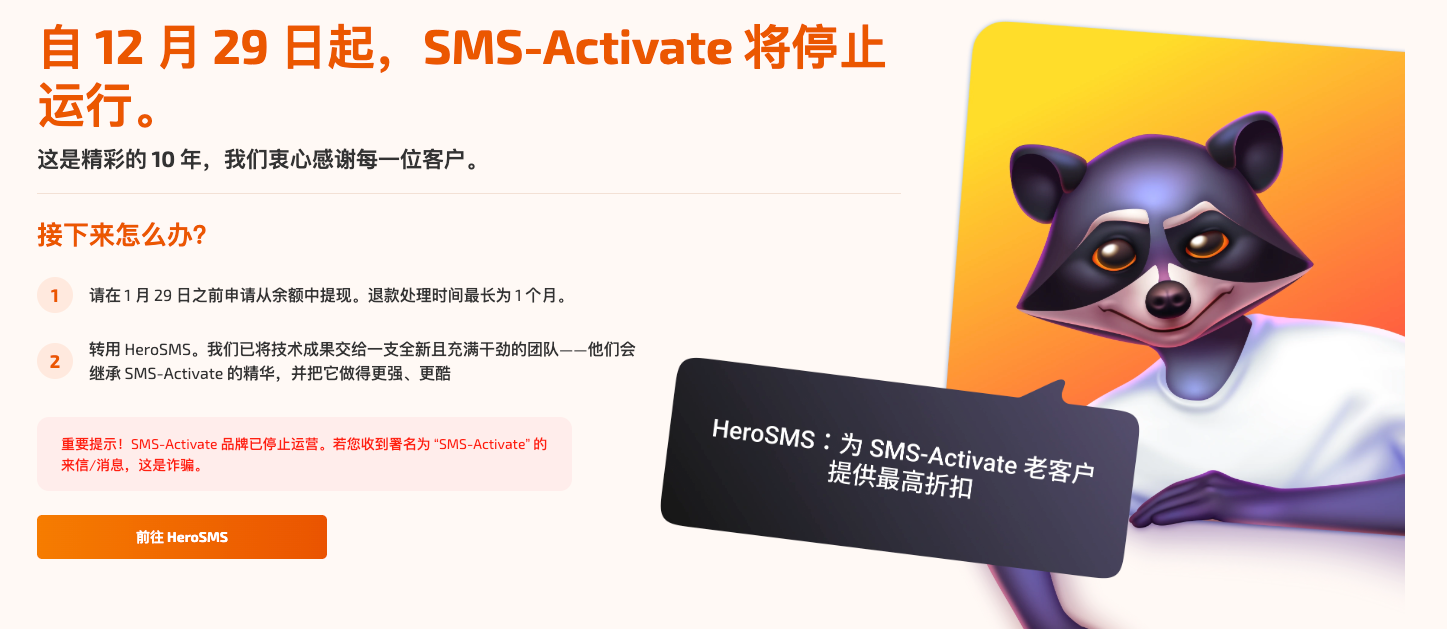 HeroSMS 原Sms Activate的技术成果交给了HeroSMS