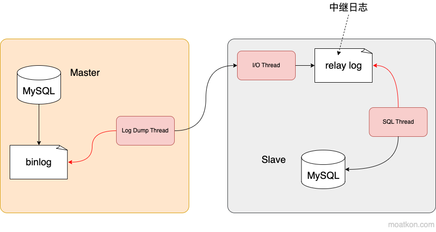 从节点 SQL 线程: SQL 线程负责读取 relay log 中的内容,解析成具体的操作并执行,最终保证主从数据的一致性。对于每一个主从连接,都需要这三个进程来完成。